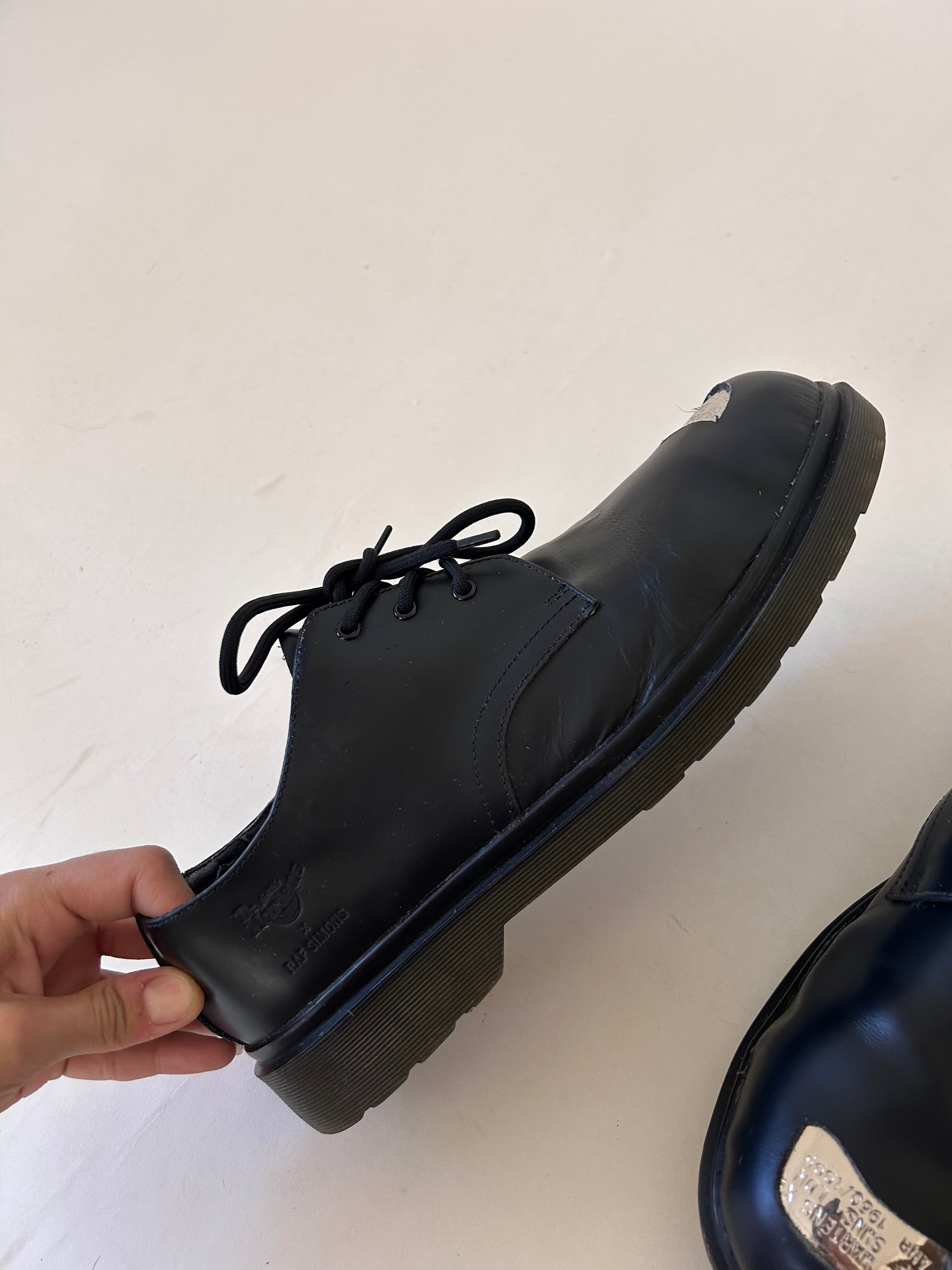Dr Martens X Raf Simons exposed steel toe leather shoes