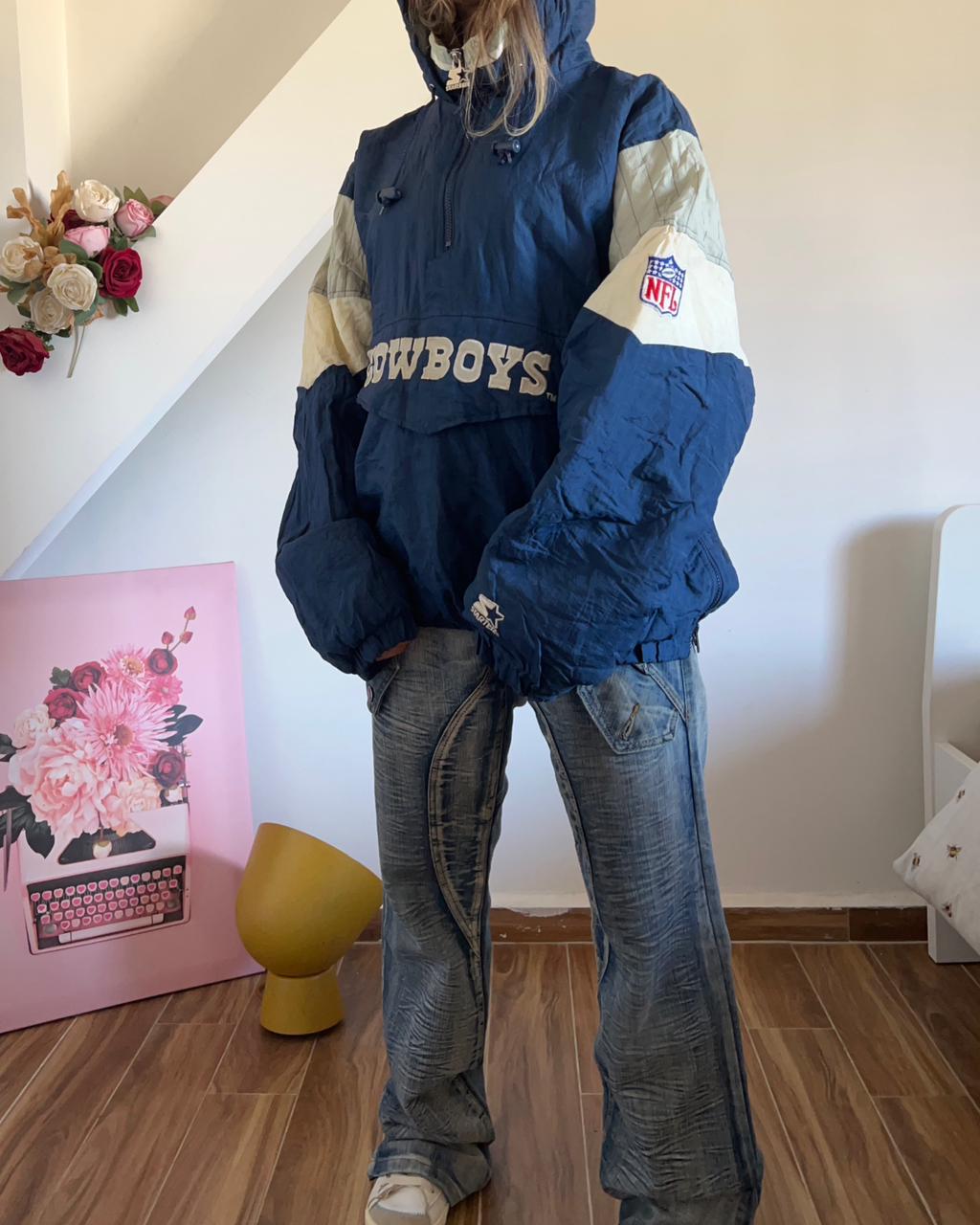 NFL Dallas Cowboys Starter vintage 90s half zip up hooded rare jacket