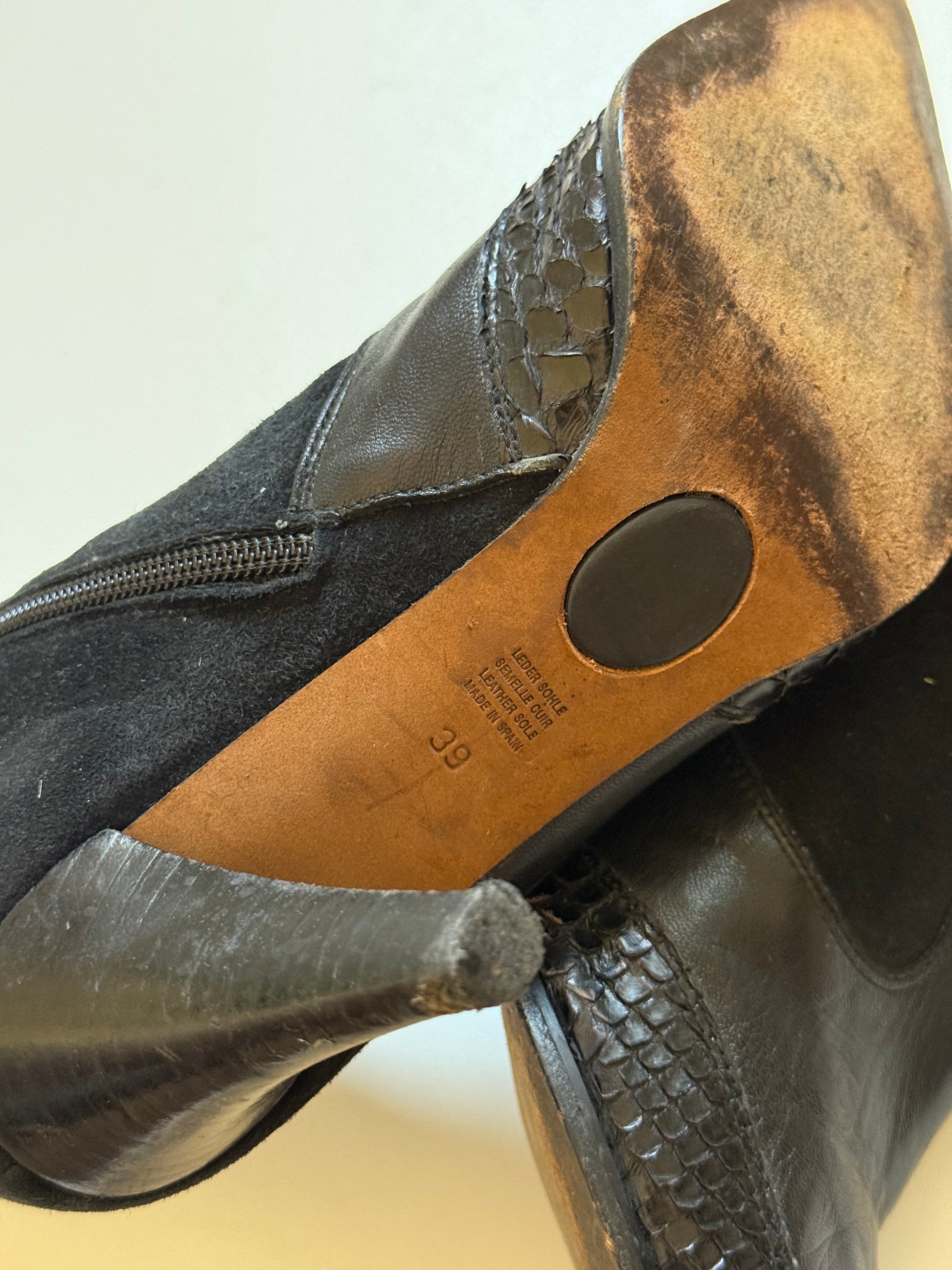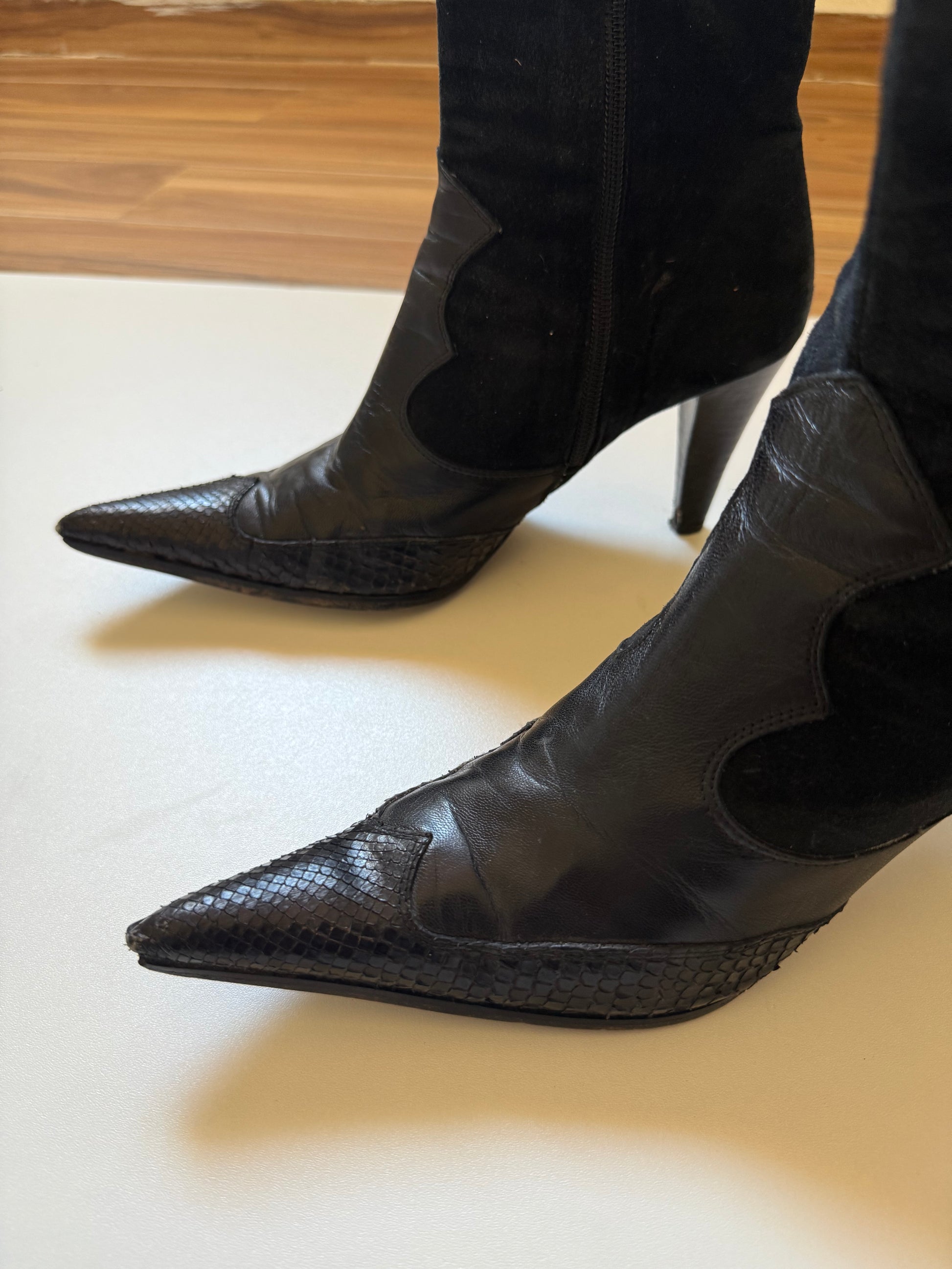 Vintage suede snake leather cowboy style boots